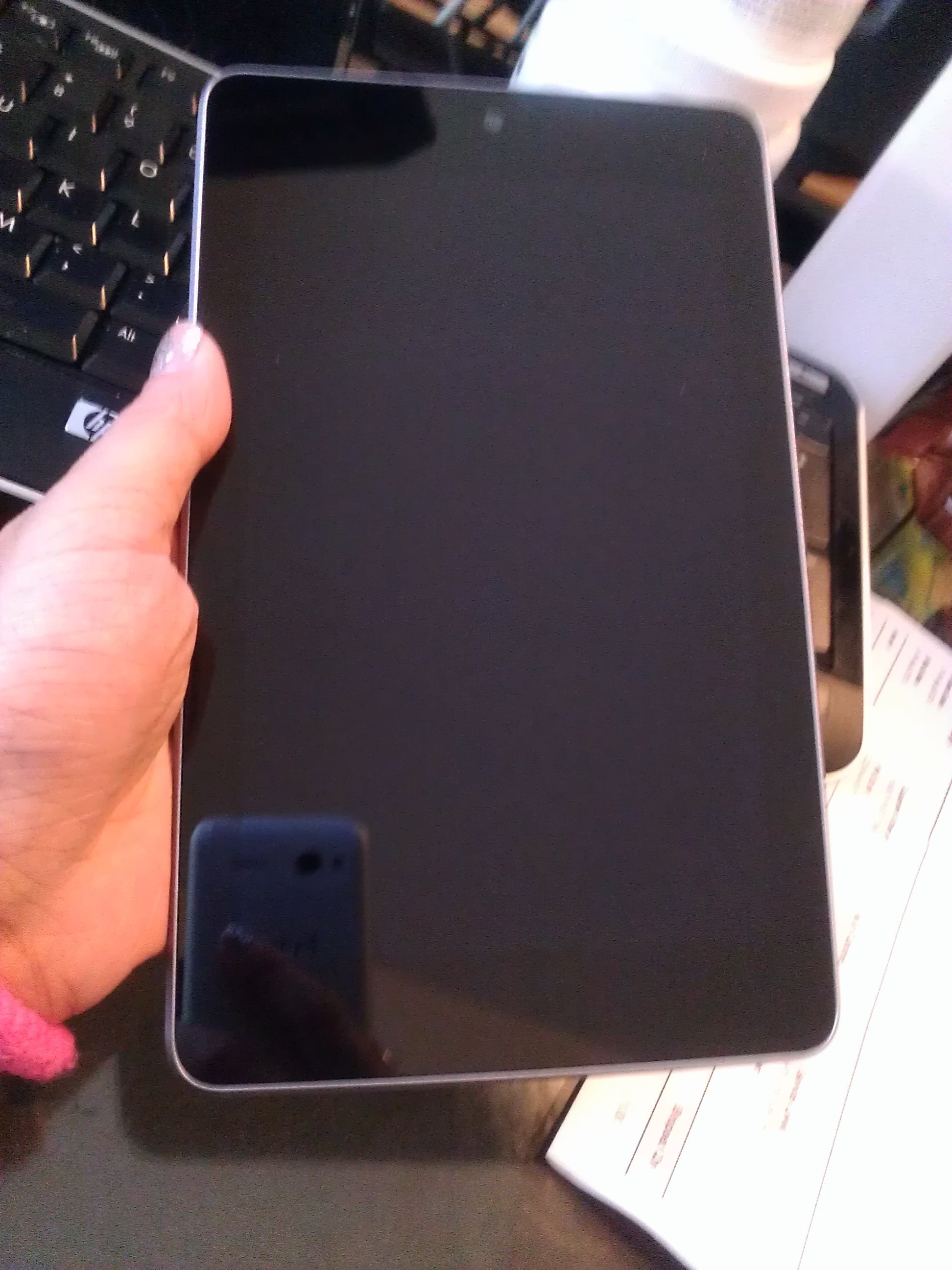 So Peter handed me the iPad mini and I told him that we would get to open it together when we both got out of work a couple of hours later (because I am patient like that). I’m all about delayed gratification! I put the new iPad into my bag which housed the other iPad mini and I secretly felt smug about having two at the same time. (silly me!) When we got out that afternoon, we climbed into the car and I took off the plastic shrink wrap and unboxed it while Peter snapped photos of the event. I put the iPad back into the box and decided I would take it home before I did anything with it. Here is where you all reading this find out how weird of a person I am. I got home at 4 PM and I literally left my iPad mini, still covered in plastic, still in its box, and still in my bag, on the floor propped against my desk for a couple of hours. I didn’t take it out to set it up until 8 PM. I’m sure Peter wanted to ask me why I hadn’t taken it out yet and perhaps he didn’t think I was excited enough. I was completely and very excited, so much that I had to get my usual tasks such as emails, homework, and etc., over with before I could finally have the peace and quiet to open it and enjoy it. I told you that I am weird.